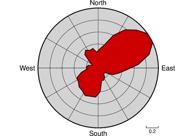 vectorsto modify vector parameters. For vector heads, append vector head size [Default is 0, i.e., a line]. See https://docs.generic-mapping-tools.org/6.6/rose.html#vector-attributes for specifying additional attributes. Ifvectorsis not given and the current plot mode is to draw a windrose diagram then usingvector_paramswill add vector heads to all individual directions using the supplied attributes.Set the confidence level used to determine if the mean resultant is significant (i.e., Lord Rayleigh test for uniformity) [Default is